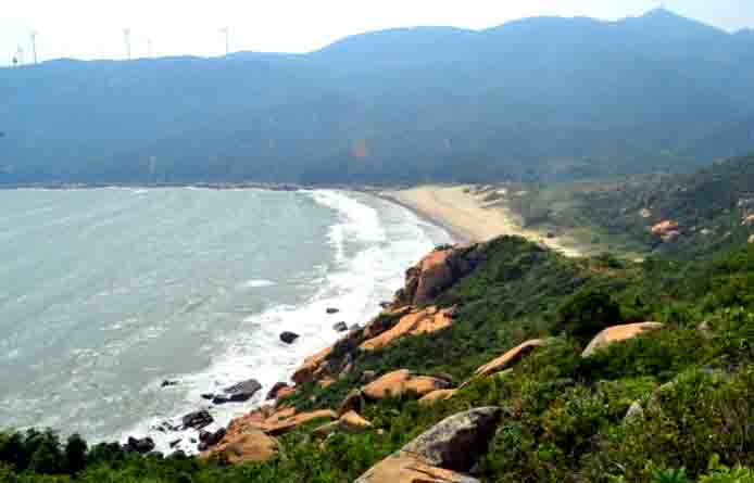 开始下山走到小三浪沙滩,中午午餐的地方便是你远望的风车下。